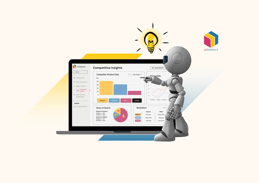 - 42Signals: Uses web scraping and AI to scrape competitor websites, ecommerce marketplaces, and even quick commerce applications to detect price changes, customer sentiment, and product information data. Some of the advanced features of the platform include –